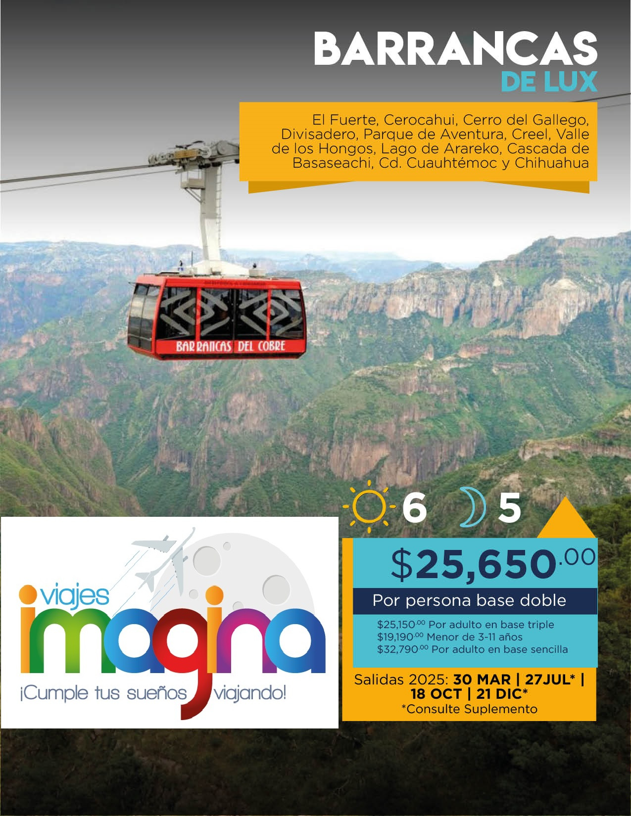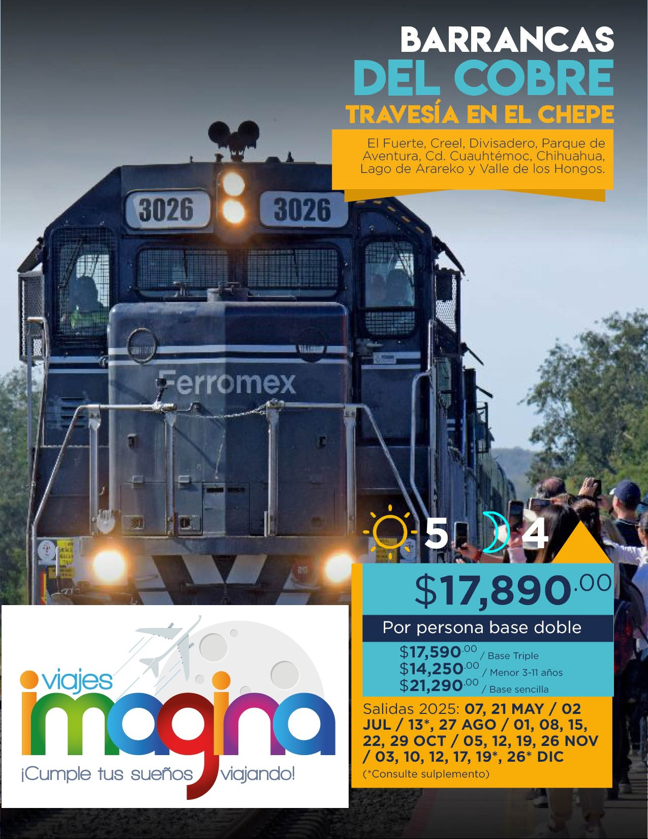 Visitando: El Fuerte, Cerocahui, Cerro del Gallego, Divisadero, Parque de Aventura, Creel, Valle de los Hongos, Lago de Arareko, Cascada de Basaseachi, Cd. Cuauhtémoc y Chihuahua.