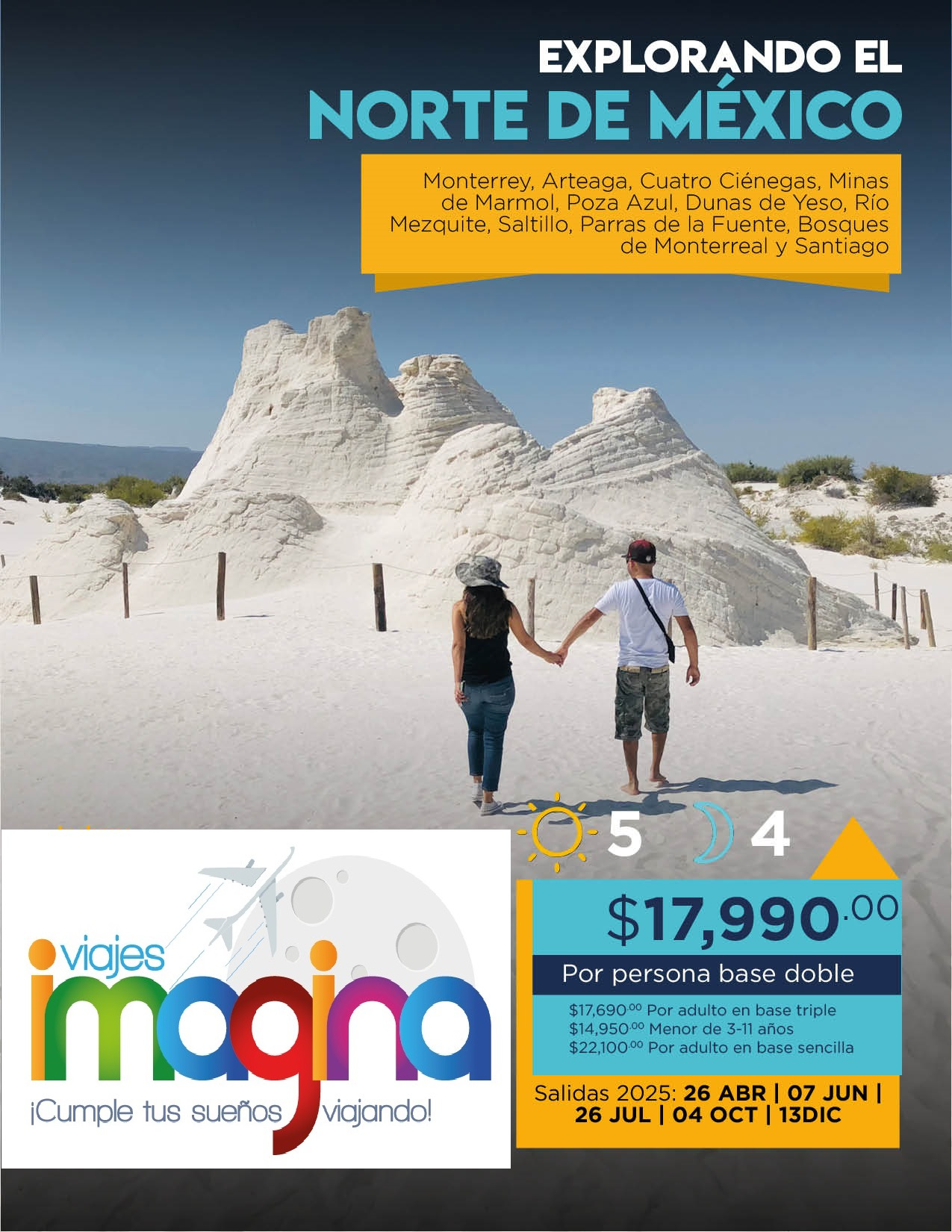Visitando: Monterrey, Cuatro Ciénegas, Poza Azul, Dunas de Yeso, Río Mezquite, Saltillo, Parras de la Fuente, Arteaga, Monterreal y Santiago.