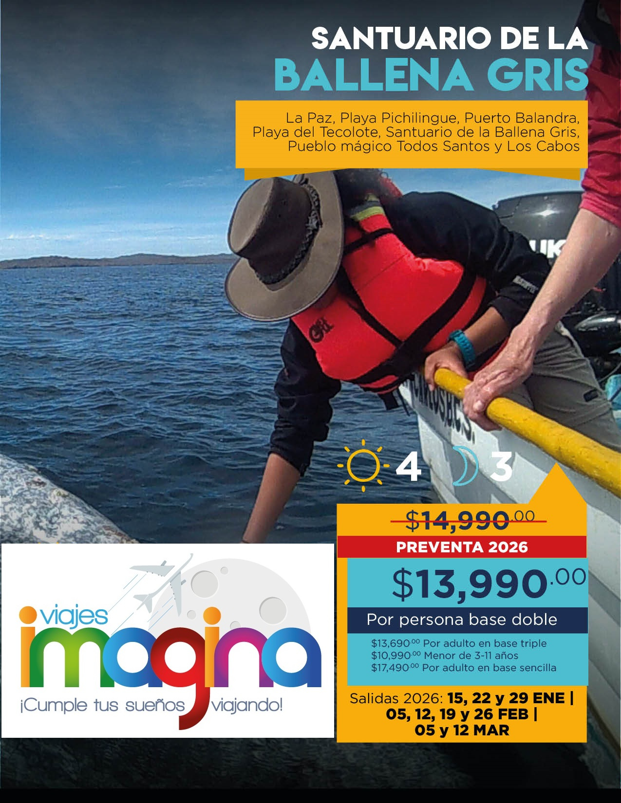 Visitando: La Paz, Playa del Pichilingue, Bahía de La Paz, Los Cabos, Puerto Balandra, Santuario de la Ballena Gris, Playa El Tecolote y pueblo mágico Todos Santos.
